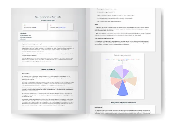 Get a detailed report of our findings by comparing the results of 3 million people who have already completed the quiz (including personal skills).